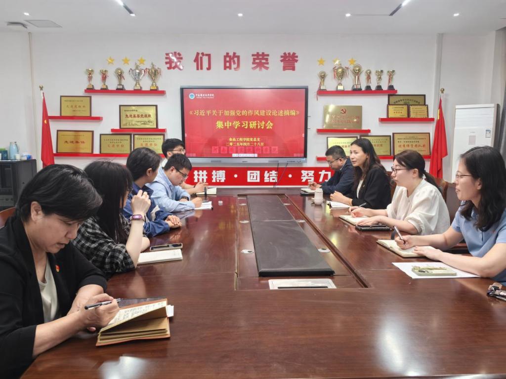 4月28日下午,学校食品工程学院党总支在学院会议室召开了深入贯彻中央八项规定精神学习教育第四次集中学习会,进一步强化党员干部的纪律意识,推动学院作风建设持续向好。会议由党总支书记王延东主持,学院全体党员干部参加。