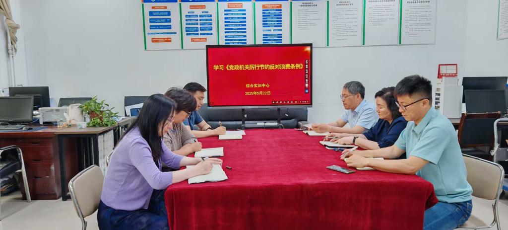 5月22日上午,学校综合实训中心党支部在行政楼122室召开全体党员大会,集中学习《党政机关厉行节约反对浪费条例》(以下简称《条例》)。会议由支部书记张凯主持,部门全体党员参会。