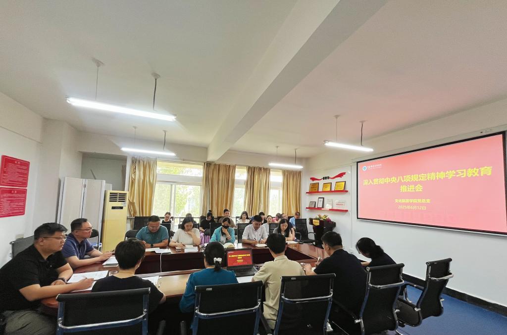 6月12日上午,学校文化旅游学院召开深入贯彻中央八项规定精神学习教育推进会,深入学习贯彻习近平总书记关于加强党的作风建设的重要论述,全面落实党中央和学校党委相关工作部署。会议由文化旅游学院院长陈佳平主持,学院全体党员教师参加。