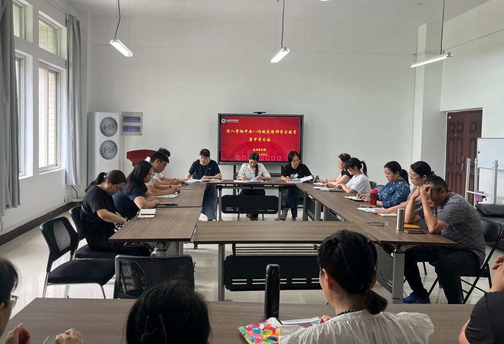 6月26日下午,学校基础教学部紧密联系本部门实际情况,组织全体党员召开深入贯彻中央八项规定精神学习教育集中学习会。基础教学部党支部书记周翠英主持了本次会议,34名党员教师参加了会议。