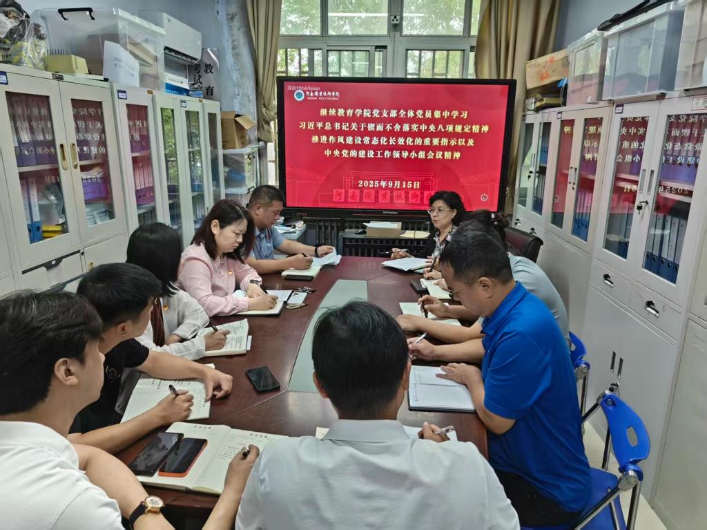9月15日上午,学校继续教育学院党支部全体党员在勤业楼126室进行了集中学习,深入学习习近平总书记关于锲而不舍落实中央八项规定精神、推进作风建设常态化长效化的重要指示,以及中央党的建设工作领导小组会议精神。本次学习活动由党支部书记王黎明主持。