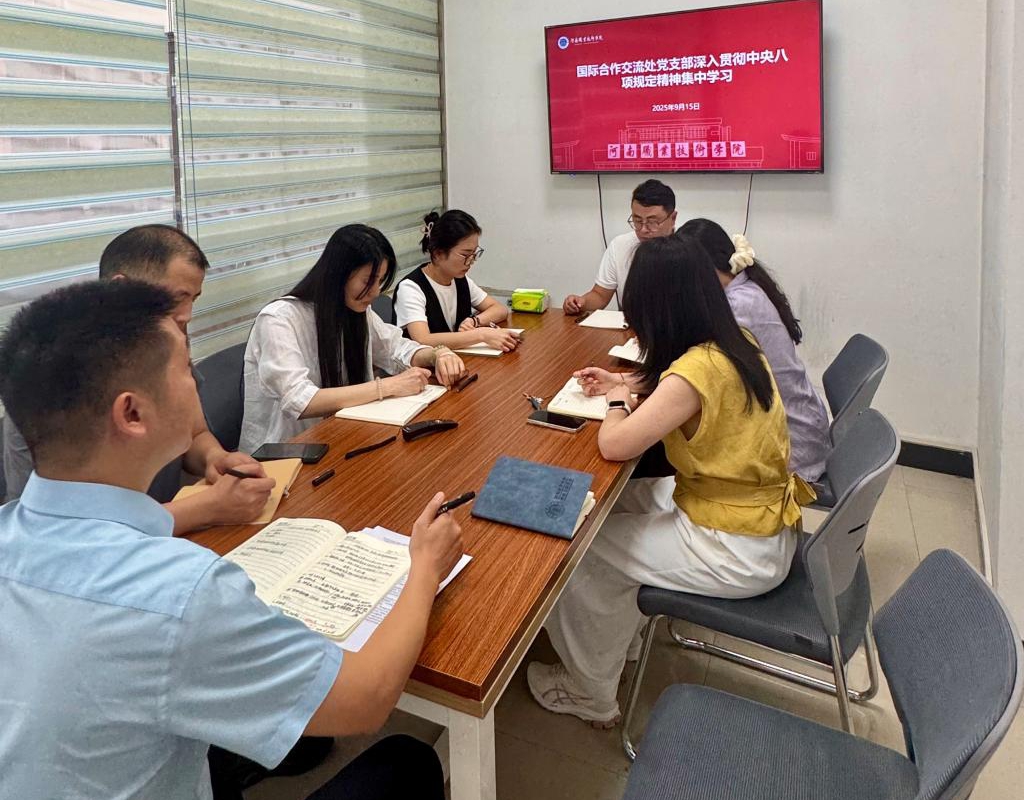 9月15日下午,学校国际合作交流处党支部在勤业楼327办公室召开深入贯彻中央八项规定精神专题学习会议。会议由党支部书记王伟主持,处室全体党员参会。