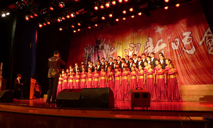 9月20日晚,音乐学院师生在校音乐厅欢聚一堂,举行“师生之爱”2011迎新生晚会,校学工部部长夏喜利、环艺系党总支负责人肖泽民等领导出席了晚会。