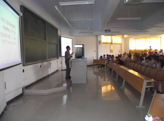 为庆祝中国共产党成立90周年,落实“党史走进校园”大型活动, 6月16日下午,汽车工程系党总支书记朱梦杰、学生支部书记万涛组织该系310名优秀学生(包括学生党员、预备党员、入党积极分子)在学院3105教室,聆听了我院张伍刚副教授所做主题为“党的辉煌”的大型讲座。
