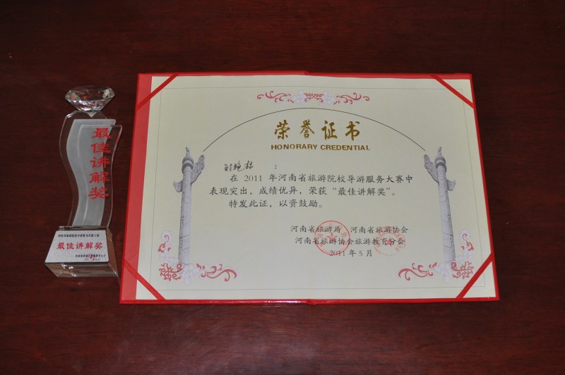 我院学生在河南省首届旅游院校导游大赛中荣获总成绩第一名
