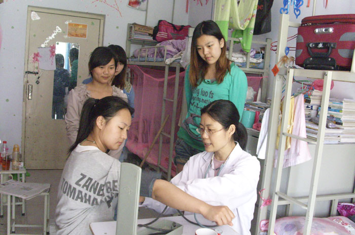 此次活动是后勤支部为推进创先争优活动结合学院党委关于开展“双百夺旗争星”评比竞赛活动的实施意见而开展的,得到了同学们的热烈欢迎。医务人员一进宿舍就被前来咨询、诊疗、量血压的同学围满,他们就春季常见呼吸道疾病的预防等问题对同学们进行指导,并免费为大家量血压、耐心的解答同学们的各种医疗咨询,受到了同学们好评。