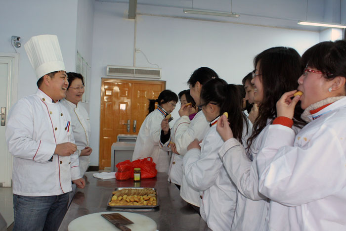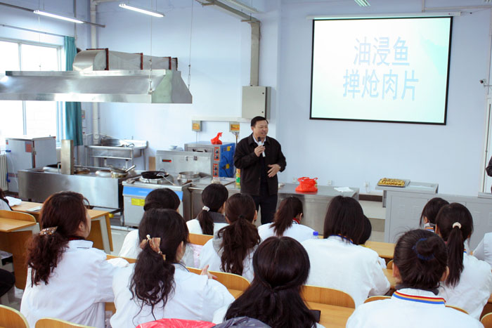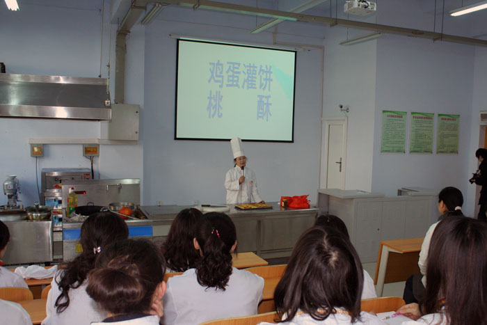 在培训班上,烹饪工艺与营养专业带头人李保定副教授讲解了《油浸鱼》、《掸炝肉片》等河南特色菜的烹调技巧。烹饪工艺与营养专业带头人赵洁副教授讲解了《鸡蛋灌饼》、《桃酥》、《戚风蛋糕》等常见面点的操作方法。烹饪工艺与营养专业带头人杨霞副教授讲解了春季养生以及食品营养搭配等营养配膳方面的知识。最后,刘志全主任结合实例纠正了大家在日常饮食中容易忽视的几个问题,重点讲解了溜、煸等几种常见的烹调技法。烹饪技能培训班受到了全系女职工的热烈欢迎。