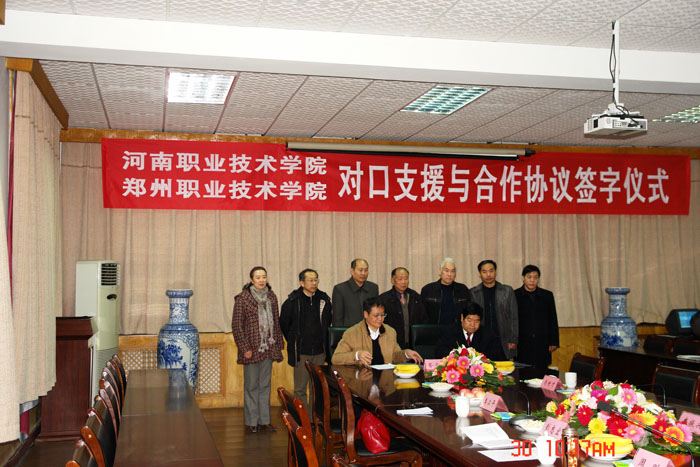 2010年12月30日上午,在郑州职业技术学院,我院与该院对口支援合作协议签字仪式隆重举行。我院副院长彭志宏与郑州职业技术学院领导一同出席了签字仪式。