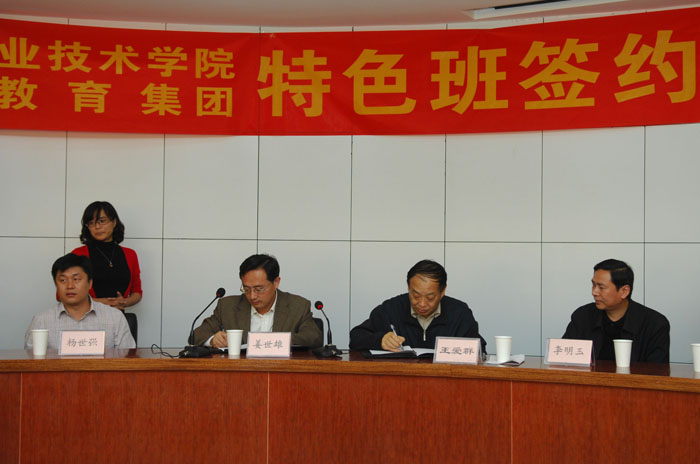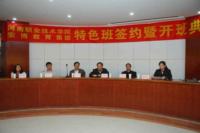 首先,王院长代表学院向出席特色班签约暨开班典礼的安博教育集团的来宾表示热烈的欢迎,对校企合作办学、共同构建符合企业需求的人才培养模式、推动软件学院课程体系、教学方法的改革和师资水平的提升给予积极的评价;对软件学院办好特色班、提高学生专业技能提出了具体要求;强调了我院组建安博软件特色班的重要意义,并对与会的学生提出了期望和要求。希望他们树立人生目标,增强自信心,养成良好的学习习惯,培养责任意识、团队意识,以饱满的热情投入到学习中去,认真完成好学习任务。     接着,安博教育集团院校合作部总监姜世雄对我院高度重视校企合作、努力打造高质量技能型软件人才的举措表示赞赏,并表示将与学院紧密合作,共同创建校企联合办学的新典范。