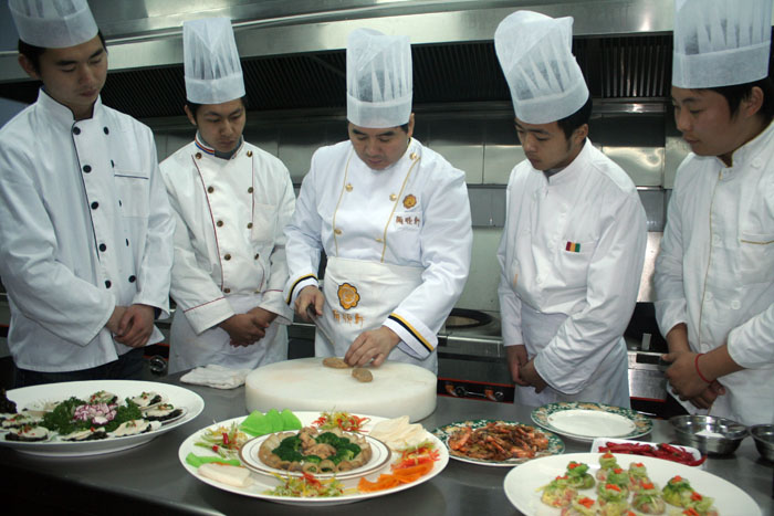 讲座结束后,李志顺大师还对旅游烹饪系即将参加河南旅游行业烹饪大赛的学生作品逐一进行了点评,并亲自示范操作。