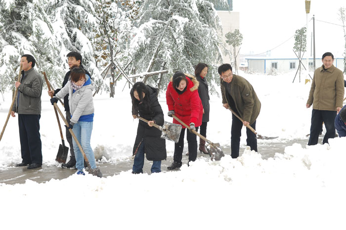 2009年11月11日傍晚开始,全省迎来了一场罕见的大雪,这场大雪给行人和车辆的出行带来了极大的不便。为了确保师生工作、学习、生活不受影响,12日早晨,我院启动应急预案,号召全体教职工清扫校园内的积雪,以保证学院正常的教学和生活秩序。信息工程系积极响应号召,八时半左右,系党总支书记李明玉带着没有课的教职工纷纷走出自己的办公室带着铁锨、扫帚开始铲雪行动。大伙首先清扫了学院大门口的积雪,因为学院大门口是车辆和行人的必经之路,也是最容易发生交通意外的地方。接着又清扫了行政楼附近,图书馆附近的积雪。由于天气寒冷,许多参加扫雪的老师面部、手部冻得通红,但没有一个人退缩,在大家的共同努力下,很快就把铺满积雪的道路给铲出一条小路来,保证了全院师生的安全出行。