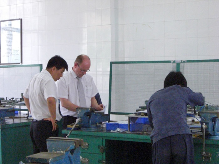 德国工商联合会专家代表有德中双方负责人狄威海和梁薇,他们在院长王爱群、系主任肖珑陪同下,对德中机电特色班第二届AHK机电一体化专业技术工人毕业考试Ⅰ进行视察指导,德国专家对我院考场准备工作做了充分肯定,对与我院合作表示非常满意,希望今后继续加大合作力度。考场工作人员在考场内准备急救箱和时钟,并摆放了漂亮的布娃娃。王院长对该系倡导国际化、人性化的考场给予了充分的肯定,希望我们要借鉴“德中机电特色班”成功办学经验,扩大办学规模,为我院示范高职建设探索新路子。同时他还认真查看了考生考试情况,对考生的考试状态比较满意。