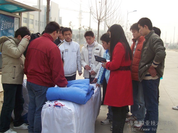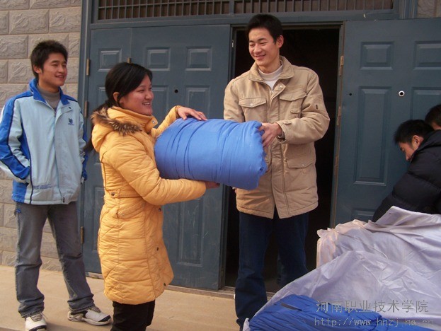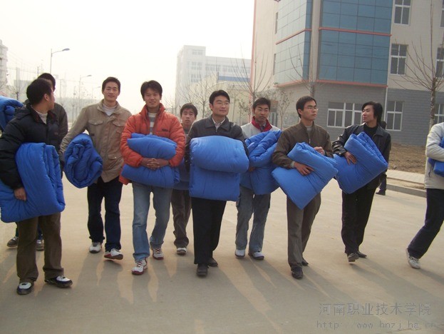 院党委杨书记、李书记亲自多方联系,选择了质量较好的军用棉被。为了能把棉被及时、公正地发放到贫困生手中,各系团总支、辅导员老师深入宿舍了解同学们的真实情况,尽量使每一个真正有困难的同学都能得到帮助,免除他们的后顾之忧,从而能够安心学习。领导和老师的关爱就像一把火,温暖了每一位特困生的心。1月6日上午,棉被刚刚出厂,就运到学校发放到了贫困生的手中。汽车工程系的刘宗普同学高高兴兴抱着又轻又软的新棉被,心里暖洋洋的,表示要以乐观的态度勇于面对暂时的经济和生活困难,增强自信,认真学习,珍惜在校期间的一切学习和锻炼机会。