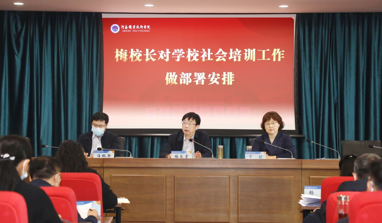 为推进学校社会培训工作落到实处,打造具有河职特色的“技能培训高地”,4月7日下午,河南职院在行政楼238会议室召开2022年社会培训工作推进会。校长梅乐堂、副校长肖珑和任枫轩出席会议并讲话。各有关职能部门、教学部门和教辅部门相关负责人参会。会议由肖珑主持。