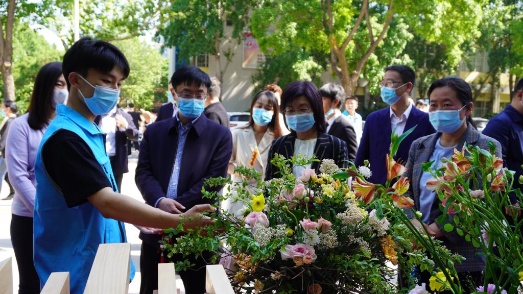 随后,校领导参观了各二级学院劳动作品展示。智慧健康学院萝卜雕刻的“大鹏展翅”、面塑的“关公提刀”,数字创意与设计学院的拼插木榫木屋、艺术造型插花,智能制造学院的“白平流沙酱测试装置”、3D打印作品,文化旅游学院DIY制作的防疫香囊,汽车与交通学院自制的沙滩赛车,音乐学院手工仿制的“贾湖骨笛”……各具专业特色的手工作品吸引了广大师生驻足观看。