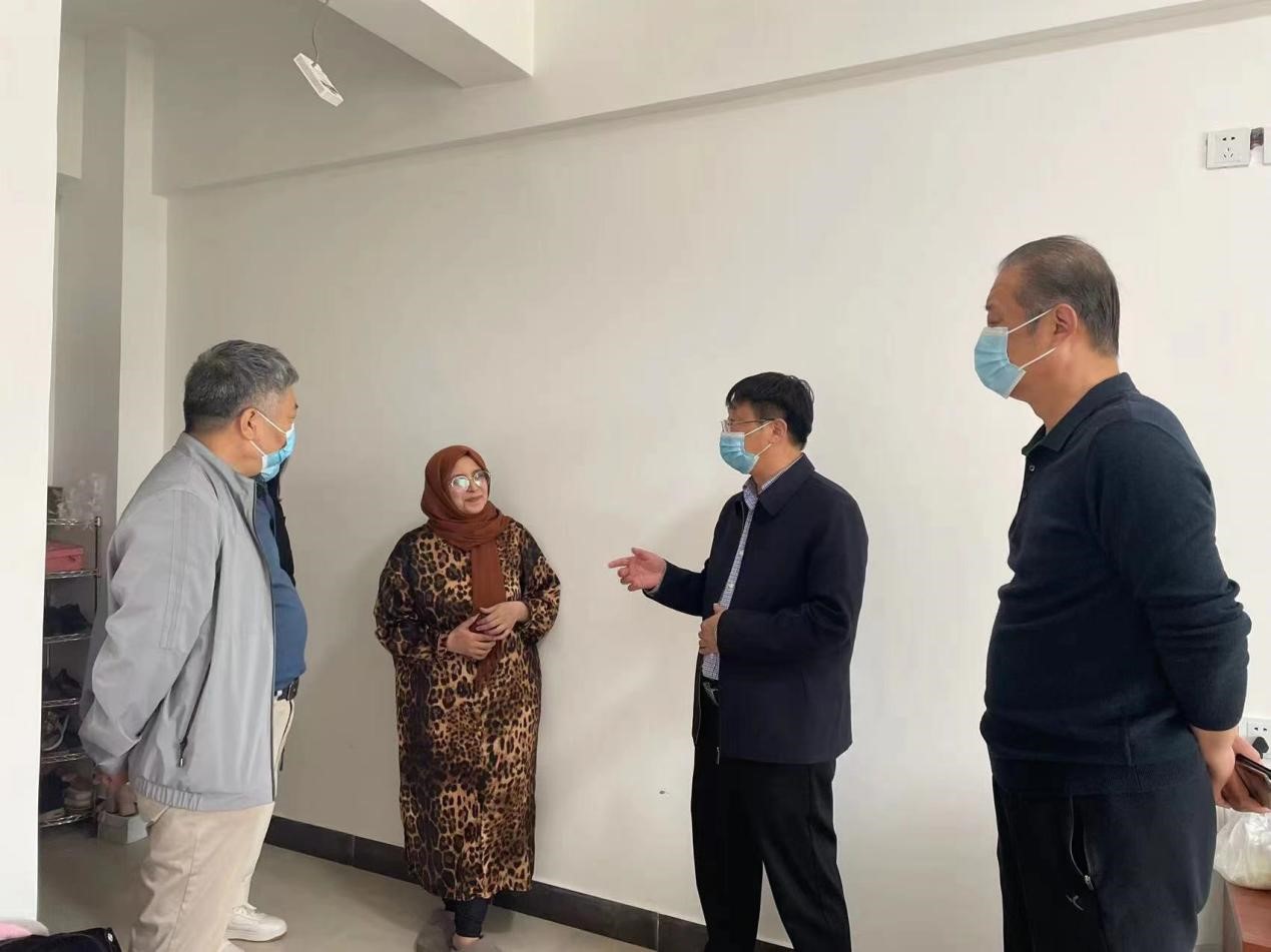 为落实学校疫情防控工作安排,做好常态化疫情防控工作,5月7日上午,校长梅乐堂、副校长王皓到留学生宿舍检查疫情防控工作,并与留学生进行亲切交流。后勤处和国际教育学院相关负责人陪同。