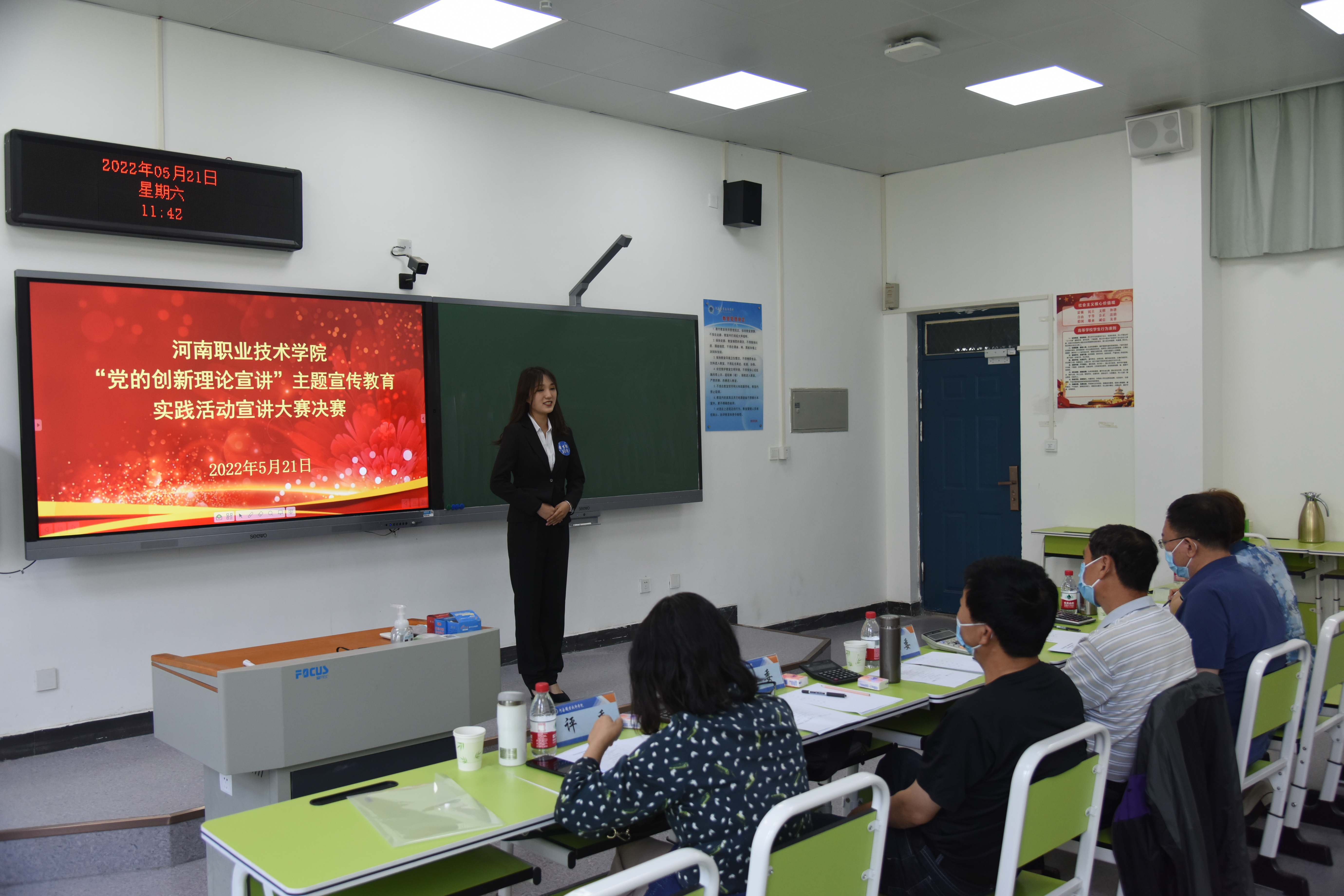 5月21日上午,河南职院在明知楼举办“党的创新理论宣讲”主题宣传教育实践活动宣讲比赛决赛。宣讲比赛分为故事类(个人赛)和文艺类(团体赛)两个类别,经初赛层层选拔,共有22个故事类作品和1个文艺类作品进入决赛,经过激烈角逐,共评选出一等奖5个、二等奖7个、三等奖11个。学校将从获奖作品中择优推荐报送上级部门,参加全省“党的创新理论宣讲”比赛。