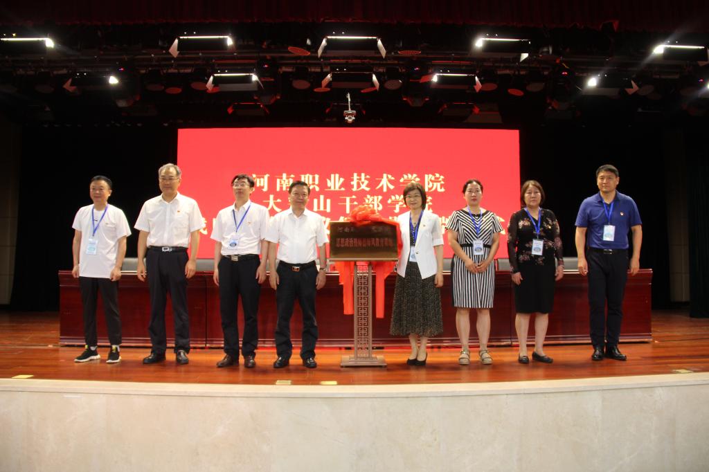培训期间,我校与大别山干部学院举行了战略合作协议签约暨教育基地揭牌仪式。李桂贞与大别山干部学院党委副书记、常务副院长林志成共同为“河南职业技术学院思想政治暨师德师风教育基地”揭牌;梅乐堂与大别山干部学院副院长曾凡军共同签署了干部教育培训战略合作框架协议。(供稿:郭晓娜;审稿:霍本瑶)