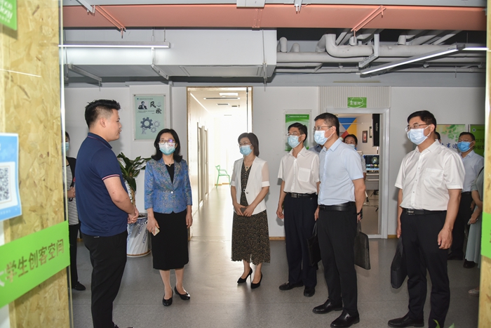毛杰一行先后实地调研了学校的创客空间、大数据双创基地、智能制造格力学习工厂、智能制造综合实训室、文化旅游学院智能餐厅实训室、茶艺实训室、智慧健康学院实训室等教育教学场所,每到一处,都与教师和学生亲切交谈,详细询问,深入了解学校人才分类培养、教学改革、创新创业、实训条件、技能大赛等情况。
