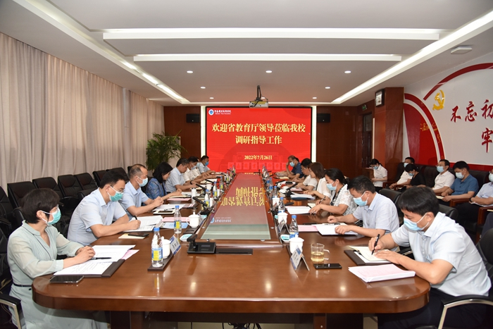 7月26日上午,河南省教育厅党组成员、副厅长毛杰,二级巡视员杨光带领厅相关处室负责同志到河南职院调研指导工作。学校党委书记李桂贞、校长梅乐堂等校领导及相关处室负责同志陪同调研。