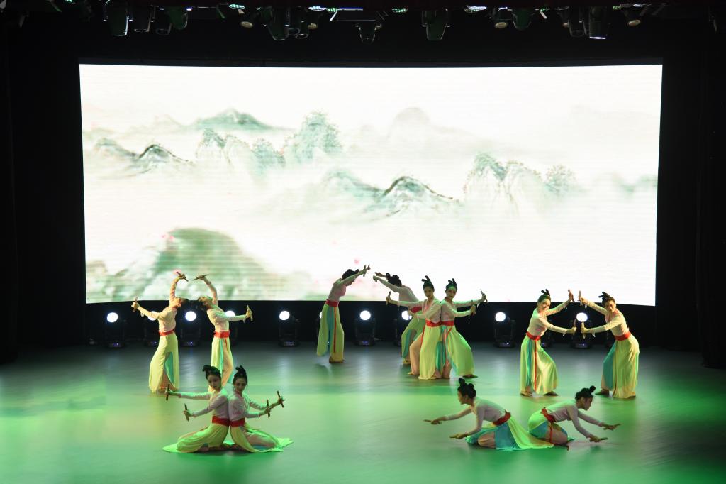 展演在舞蹈《成长在祖国的怀抱》中拉开序幕,音乐学院学前教育专业的同学们以优美的舞姿,生动形象地诠释了生长在祖国的怀抱里、在党的阳光下快乐成长的拳拳之心。李娜 、翟冰雨等同学深情演绎的《春风十万里》,用歌曲再现了“枝头桃花红,陌上杨柳绿,这方才播种,那边又开犁,燕子飞来了,衔来满嘴泥”的春天景象,歌颂我们伟大祖国朝气蓬勃、欣欣向荣的大好局面。吴建华、马雯两位老师倾情演唱的歌曲《把一切献给党》,表达了广大师生员工对党忠诚不渝,对信仰矢志不移,甘愿为了理想奉献青春、奉献生命的坚定信念和满腔豪情。由音乐学院师生联袂演出的压轴歌舞《复兴的力量》,以磅礴的气势,表达了中华儿女为实现中华民族伟大复兴中国梦的决心,把整场晚会推向了高潮。舞蹈《书的流离》、《灼灼芳华》、《只此青绿》和《烈火中永生》,快板《道路》,古筝协奏曲《定风波》、话剧《一九四二》片段等节目轮番上演,精彩纷呈。整场展演以丰富多彩的艺术表现形式,展现了悠久灿烂的中华文化,幸福美好的时代生活,真挚动人的爱国主义情怀,弘扬了社会主义核心价值观,歌颂了中国共产党团结带领中国人民经过艰苦卓绝的奋斗在社会主义革命和建设中所取得的伟大成就。全体参演师生精神饱满,激情洋溢,精彩的表演和精湛的技能,赢得现场观众阵阵掌声。