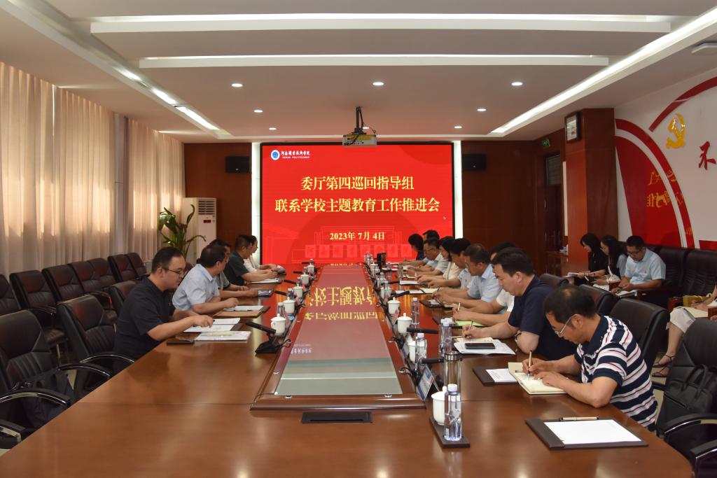 7月4日下午,委厅主题教育第四巡回指导组联系学校学习贯彻习近平新时代中国特色社会主义思想主题教育工作推进会在河南职院召开,总结交流了主题教育前一阶段开展情况、典型经验做法,并安排部署了下一步工作。省委教育工委、省教育厅组织干部处处长、一级调研员冯轩友,委厅主题教育第四巡回指导组组长刘卫锋出席会议并讲话。委厅主题教育第四巡回指导组全体同志以及联系指导的新乡工程学院、安阳学院、河南职业技术学院等9所学校党委书记及联络员参加会议。会议由第四巡回指导组副组长曹相智主持。