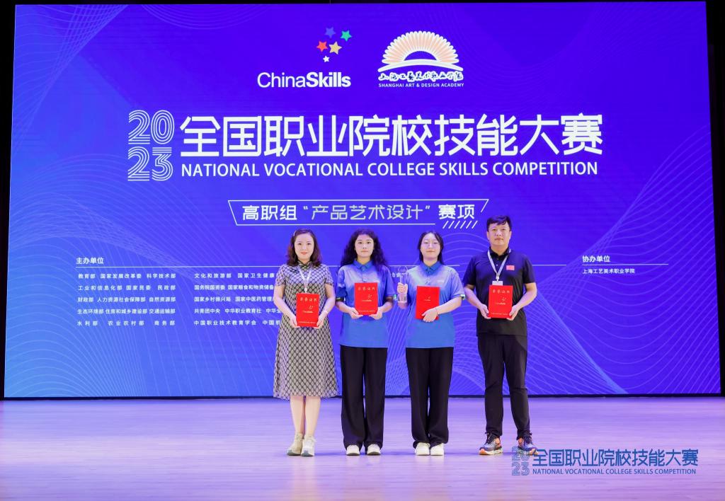 9月7日至8日,2023年全国职业院校技能大赛高职组“产品艺术设计”赛项在上海工艺美术职业学院嘉定校区举行,来自全国27个省、自治区、直辖市的59支参赛队伍118名参赛选手同台竞技。经过激烈角逐,河南职院数字创意与设计学院学生李怡蕾、侯玉婷团队荣获“产品艺术设计”赛项一等奖。教师赵永立、李姗分获“优秀指导教师”称号。
