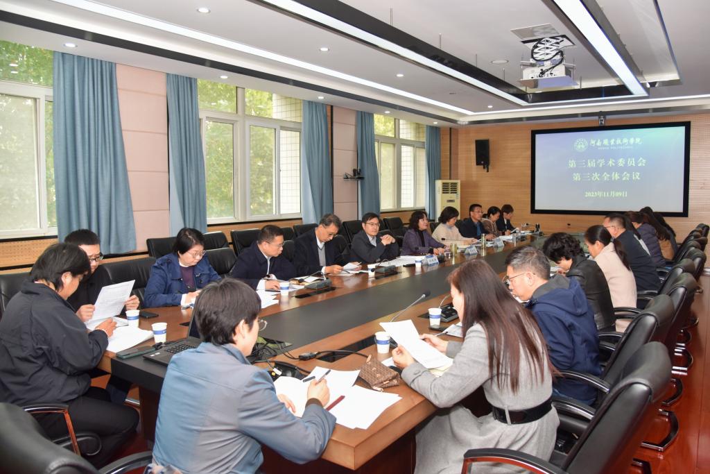 11月9日上午,河南职院第三届学术委员会第三次会议在行政楼317会议室召开。会议宣读了夏新颜同志担任学校第三届学术委员会主任委员文件,审议了学校科研人员学术规范事宜议题。夏新颜就审议的议题提出了具体意见和要求。21位委员参加会议,2位博士代表受邀列席会议。会议由学校第三届学术委员会副主任委员肖珑主持。