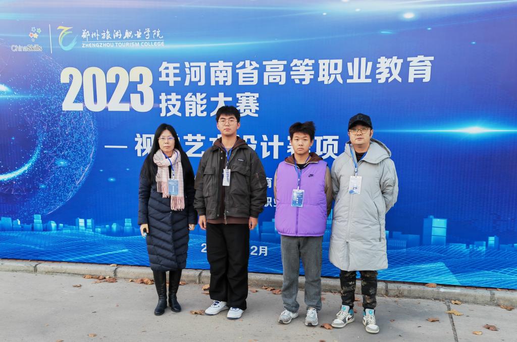 日前,2023年河南省高等职业教育技能大赛“视觉艺术设计”赛项在郑州旅游职业学院举办。河南职院数字创意与设计学院王兆阳、张若晖老师指导的马云涛、陈延照两位同学,凭借扎实的技能与丰富的创意,均获一等奖。