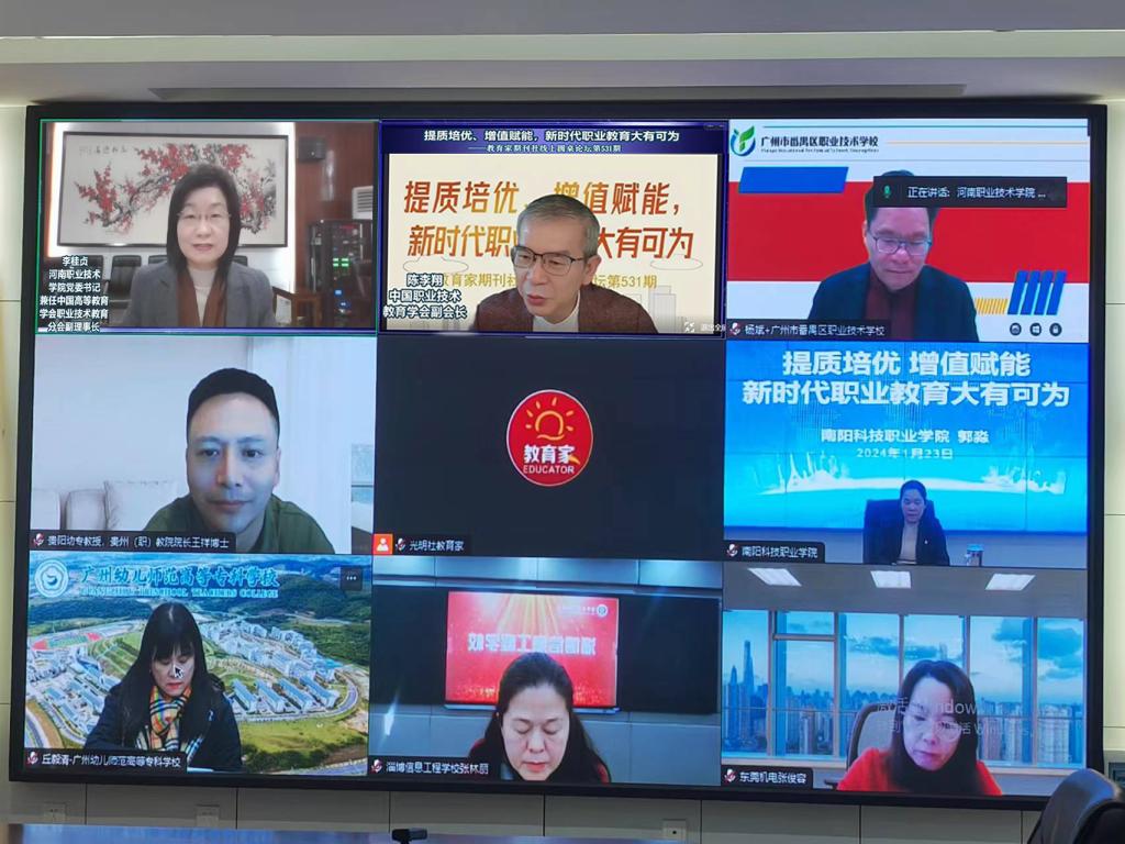 1月23日上午,光明日报《教育家》杂志举办了“提质培优、增值赋能,新时代职业教育大有可为”为主题的线上论坛活动,中国职业技术教育学会副会长陈李翔主持活动,来自全国7所职业院校书记、校长参加了交流研讨。校党委书记李桂贞应邀参会,并作题为“数字赋能、精准施教,努力培养适应性强、高质量技术技能人才”的专题分享。