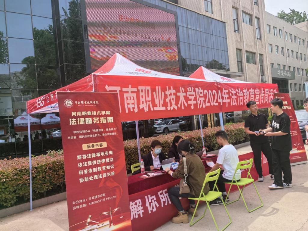 活动周期间,学校积极创新法治教育宣传形式,以“一日一活动”为主线,精心打造了“法律诊所”“法治长廊”“普法电波”“学法诵典”“法治讲堂”等富有河职特色的法治活动,奏响河职普法宣传最强音。“法律诊所,解你所惑”,党政办公室联合河南荟智源策律师事务所将法律诊所开进校园,“问诊”法律疑难、普及法律知识,切实增强了全校师生的法治意识和运用法律知识解决实际问题的能力;“法治长廊,润心育人”,党委宣传部认真践行校园法治文化阵地建设,利用条幅、海报、宣传栏等传播载体,结合通俗易懂的法律图文,在校园内搭设法治文化长廊,让师生近距离学习法律知识,接受法治文化熏陶,为校园再添靓丽的法治风景线;“普法电波,声声不息”,团委通过校园广播站积极传播法治声音,分享消防安全、网络安全、道路交通安全、心理健康、防范电信诈骗等与师生息息相关的法律法规及案例,让“普法小喇叭”萦绕在师生耳边心间;“学法诵典,典亮生活”,党委学生工作部重点围绕《民法典》举办“学法典、诵法典”主题朗诵活动,组织学生以多种形式诵读法律条文,并结合校园霸凌、紧急救助、“校园贷”、高空抛物等热点时事,以案释法、以典说法,让《民法典》这部“社会生活百科全书”真正走到学生身边、走进学生心里;“法治讲堂,强基铸魂”,马克思主义学院邀请河南警察学院张国琦教授等法学专家,面向广大师生作法治专题报告,与会师生通过聆听翔实生动、贴合校园实际的法律讲座,深刻领悟习近平法治思想的丰富内涵,让法治理念在心中生根发芽。