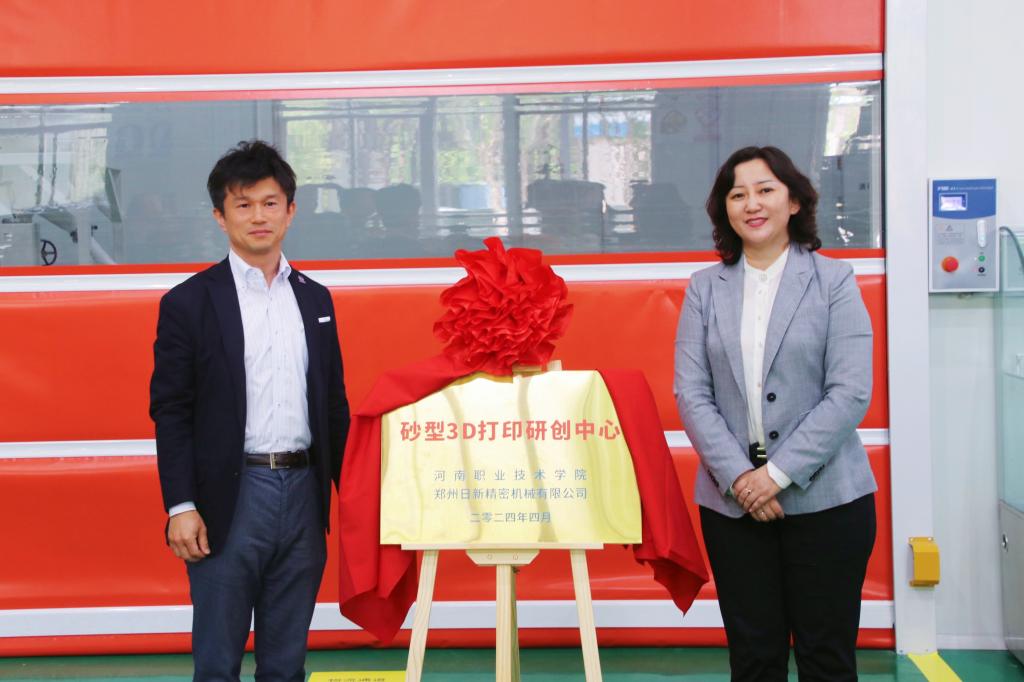 随后,夏新颜和岡崎真之共同为“砂型3D打印研创中心”进行揭牌。