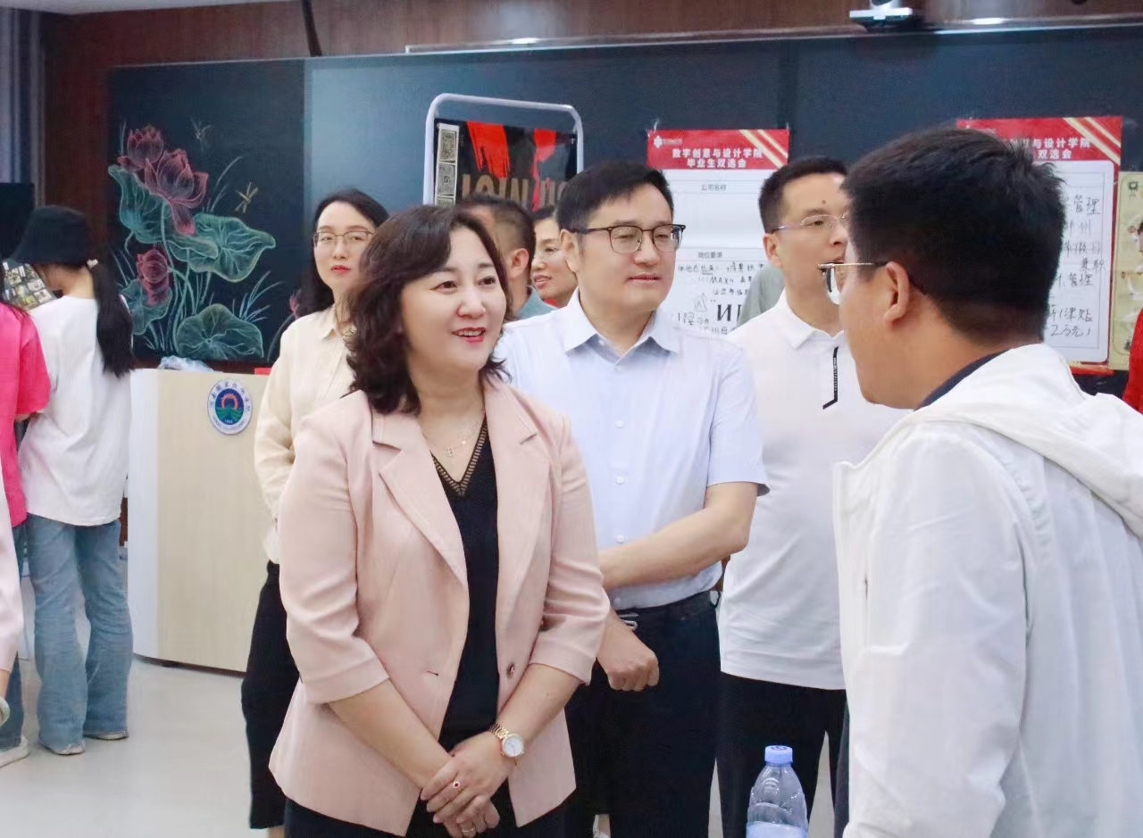 5月30日下午,学校数字创意与设计学院2024届毕业生夏季专场双选会在合鼎楼举行。校长夏新颜、副校长任枫轩深入双选会现场,与招聘企业和毕业生亲切交谈。河南锦鲤文化传播有限公司、郑州劳恩格润生物技术有限公司和星空企服科技有限公司等33家企业参会,为数创专业学生提供建筑、园林、影视和文化传媒等6大行业的300余个岗位。