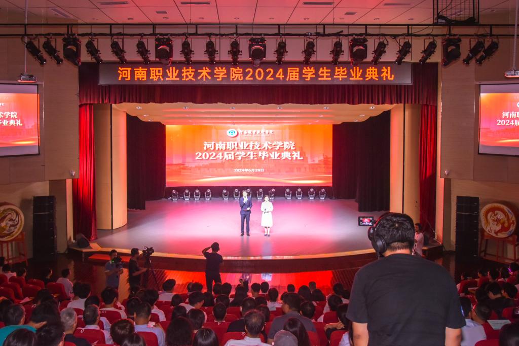 夏新颜作题为《与时代同行 书青春华章》毕业典礼致辞。她代表学校向圆满完成学业的7450名同学、向149名优秀毕业生、5名杰出毕业生表示祝贺,向辛勤培育同学们健康成长的老师们家长们表示最崇高敬意。她带领同学们一起回顾了在河职三年时光里的点点滴滴,并希望全体毕业生:一要坚定理想,做新时代的逐梦人。时刻将责任担当牢记于胸,自觉承担社会责任,勇做民族复兴的脊梁,用自己的“青春梦”托起“中国梦”,在“中国梦”中实现“个人梦”。二要砥砺奋斗,做新时代的实干家。在不懈奋斗中将学到的专业知识和技能带到工作中去、带到社会上去,用匠心铸就梦想,用技能点亮人生。三要勇于创新,做新时代的开拓者。争做开拓新领域、创造新业态、探索新模式、发展新质生产力的先锋,在创新创业的浪潮里奋力远航。四要闪亮生活,做新时代的追光者。要保持爱己、爱人、爱家庭、爱事业、爱生活的定力,在风雨中做个大人,在阳光下做个孩子,成就最好的自己。