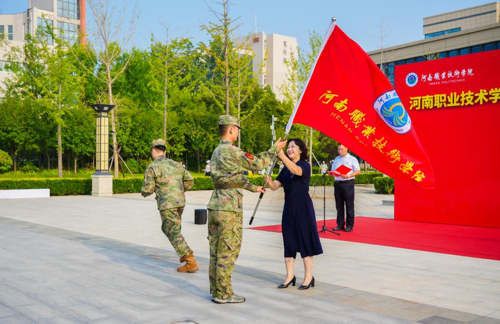 活动现场,夏新颜为军训总教官授校旗。田华作动员讲话,指出学生军事训练,是实现立德树人根本任务、培养高素质后备兵员和提高教育质量的重要方式,是增强爱国主义、集体主义和国防意识的绝好途径。她希望同学们通过为期14天的军训,能够增强纪律观念,磨练坚强意志,练就实干本领,增长服务才干,培养艰苦奋斗作风,为努力成为“政治素质高、学习成绩优、作风纪律严、理想抱负远”的新时代合格大学生打下坚实基础。