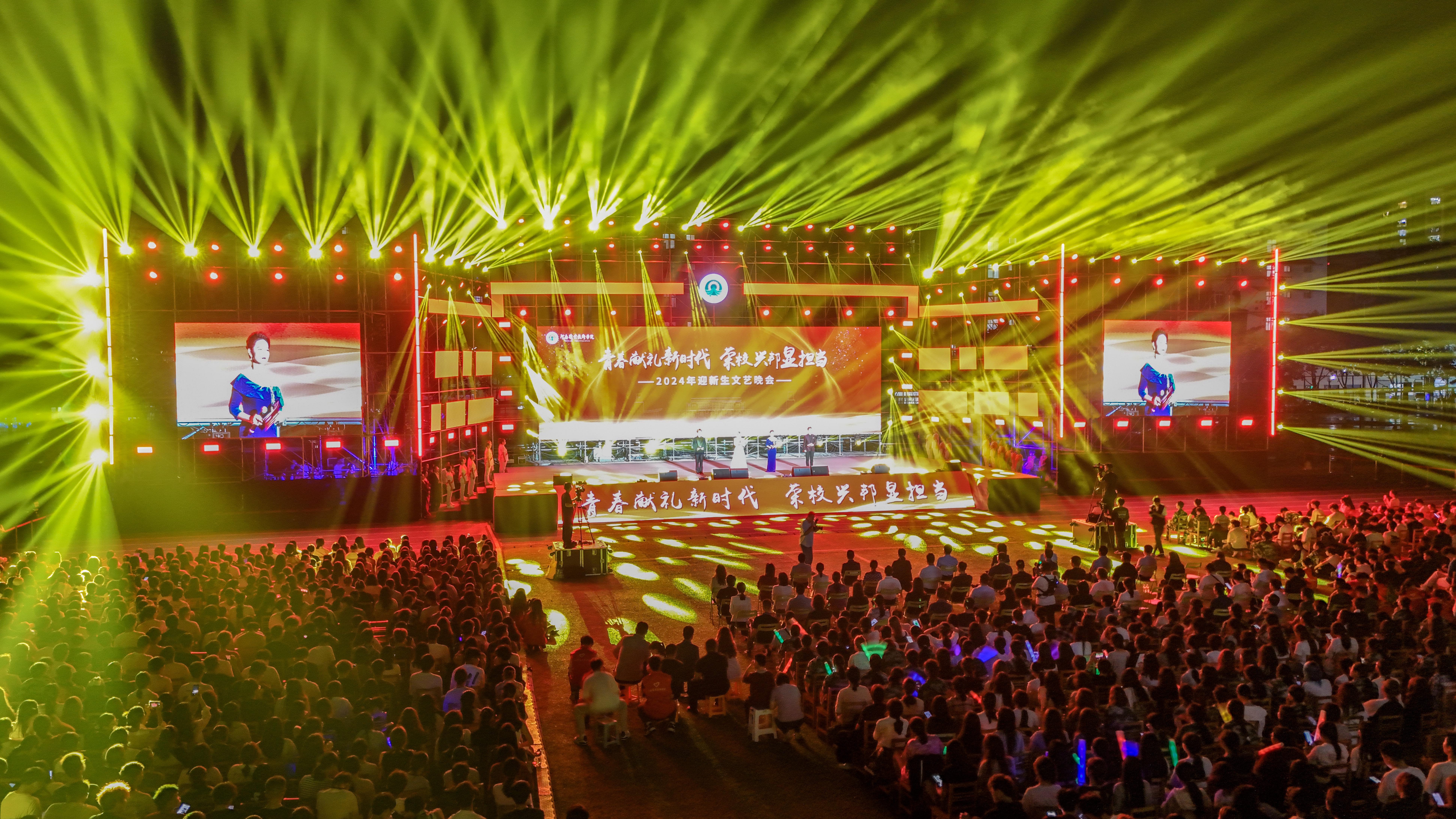 青春献礼新时代,荣校兴邦显担当。9月19日晚,学校在田径运动场举办2024年迎新晚会。校党委书记厉励及在校领导班子成员,各单位相关负责人、全体新生辅导员及7600余名新同学共同观看演出。