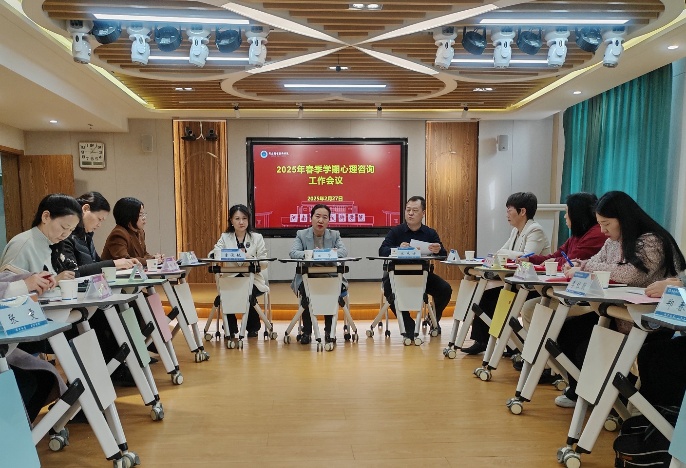 2月27日下午,学校2025年春季学期心理咨询工作会议在河职创新港503室召开。校党委副书记、工会主席田华出席会议并讲话。党委学生工作部负责人和16名专兼职心理咨询教师参加会议。