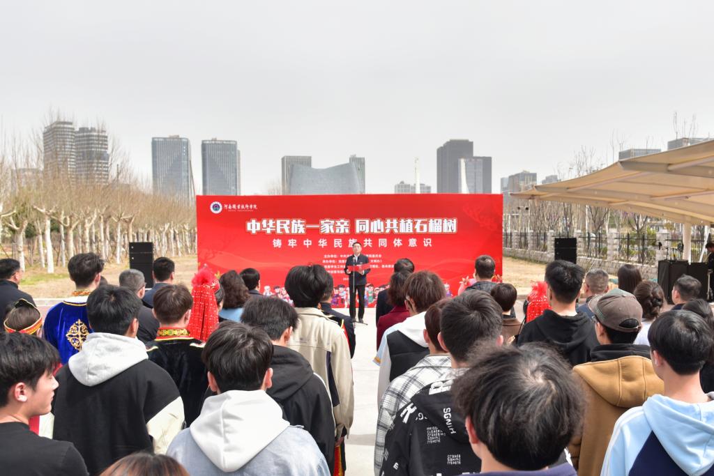 3月12日是全国第47个植树节,当天,河南职院举行了“中华民族一家亲,同心共植石榴树”活动。校党委书记厉励出席活动,为学生讲授铸牢中华民族共同体意识思政课,并为“民族团结石榴林”揭牌。校党委委员、副校长任枫轩,党政办公室、党委宣传部、党委学生工作部、校团委、后勤管理处、基本建设处和各二级学院相关负责人,以及120余名各民族师生代表参加活动。校党委副书记、工会主席田华主持活动。