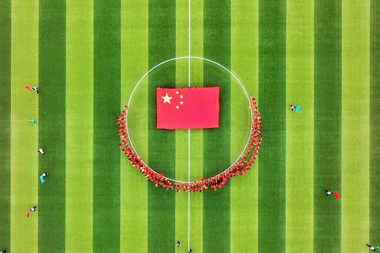入场完毕后,举行庄严的升旗仪式。在雄壮的国歌声中,五星红旗冉冉升起,全体师生庄严肃立,齐唱国歌,心中涌起强烈的民族自豪感与爱国情怀。