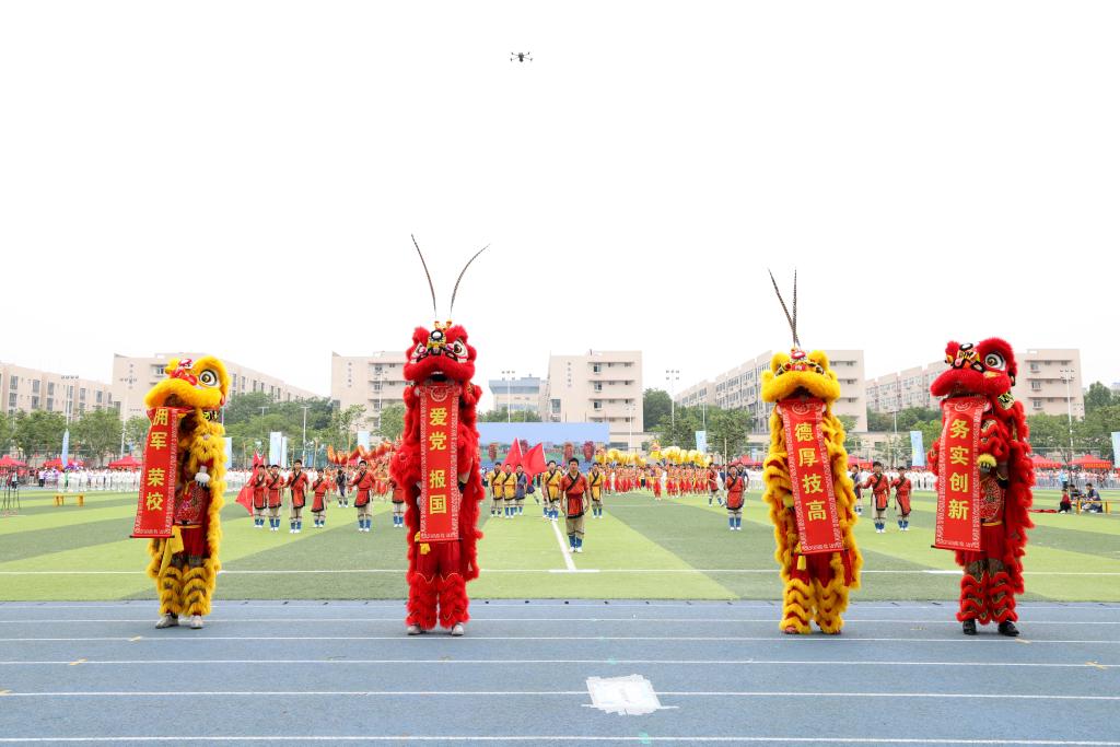 在开幕式展演环节,学校控制工程学院、数字创意与设计学院、武装部办公室参军意愿学生展演队、河南金龙舞狮团、登封市嵩山少林塔沟武术学校带来《龙狮共“武”》;教职工队伍表演了健身气功《八段锦》;音乐学院、校篮球队、足球队、健美操队表演了《哪吒闹海》和《我爱你中国》。师生节目活力四射、激情澎湃,赢得现场阵阵掌声。