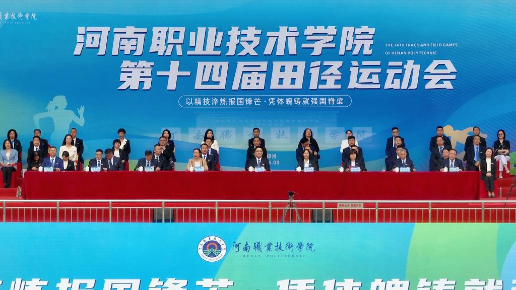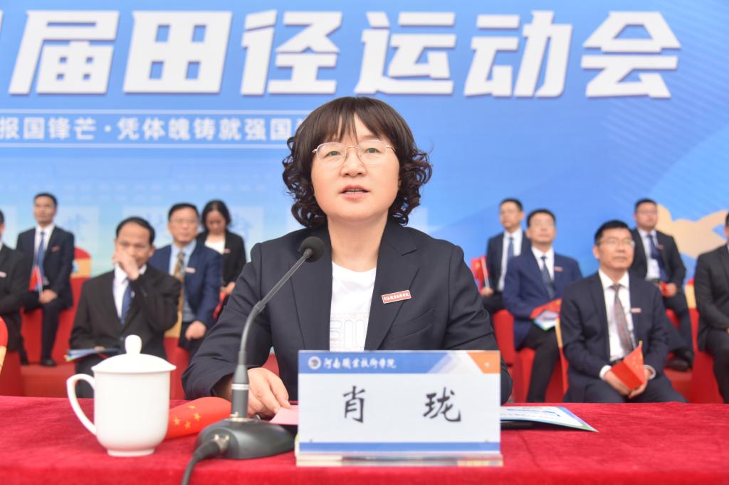 校党委副书记、校长夏新颜致开幕辞,指出近年来学校深入贯彻落实习近平总书记关于体育与健康工作的重要指示精神,始终遵循“师生为本、健康第一”的教育理念,把深化体育改革作为“五育并举”高质量育人体系的战略支点,聚焦“设施提质、课程增效、体教融合”三维发力,重塑活力校园体育新格局,育人根基更加坚实,体育特色更加鲜明,师生活力更加迸发。她希望全体运动员竞技赛场,遵守规则、奋勇争先、赛出成绩、赛出水平;全体同学燃动赛场,为运动健儿呐喊助威、加油鼓劲;全体师生服务赛场,营造公平公正的竞技环境,维护安全有序的赛场秩序,以“四高四争先”战略为引领,凝聚“强国有我”的青春力量,诠释“青春有为”的使命担当,共同开创学校高质量新局面,为奋力谱写中国式现代化河南篇章注入青春力量,为健康中国、体育强国建设贡献河职担当。