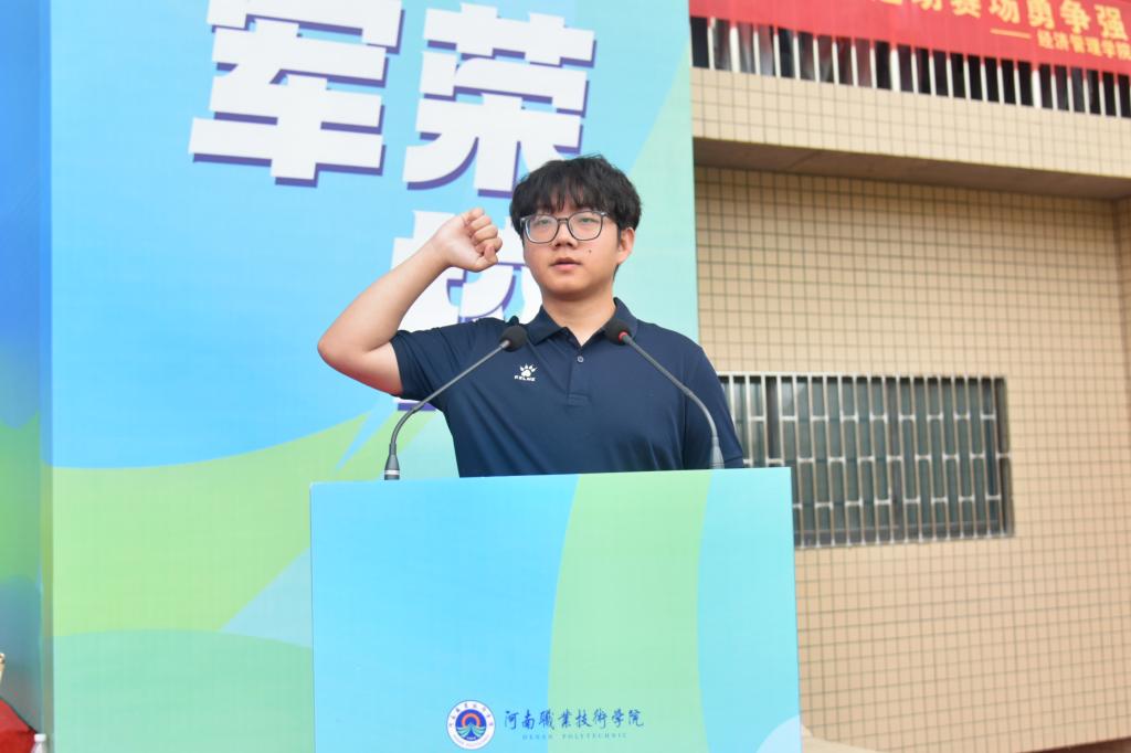 校党委书记厉励宣布河南职业技术学院第十四届田径运动会开幕。