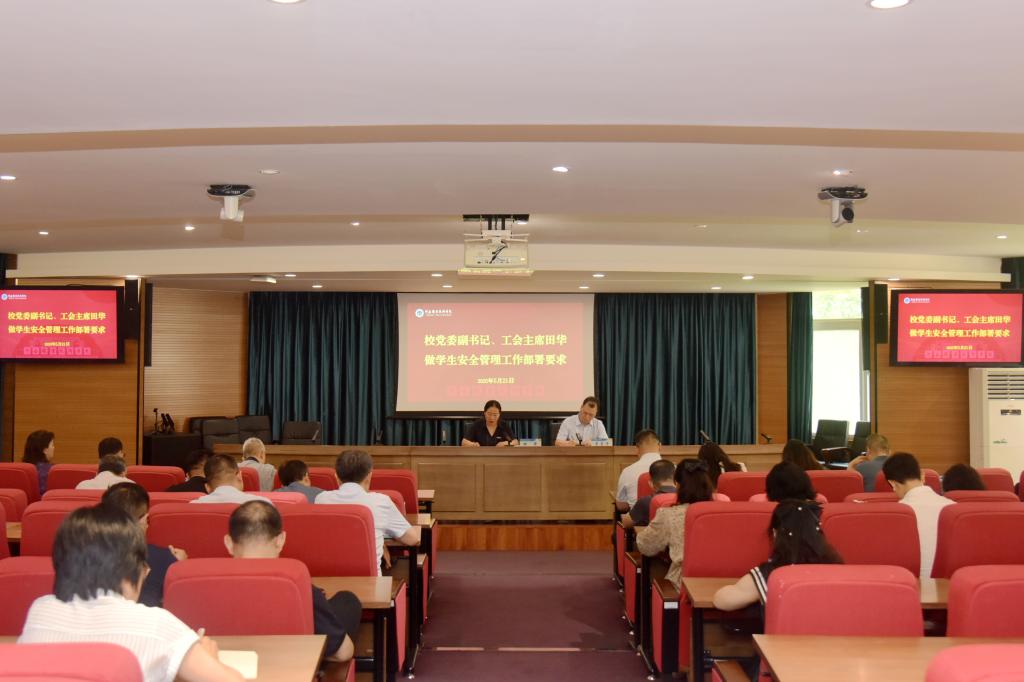 近日,学校在行政楼238会议室召开2025年学生安全管理工作扩大会议。校党委副书记、工会主席田华出席会议并讲话。学校9个职能部门、14个教学部门及4个教辅部门的负责人参加会议。