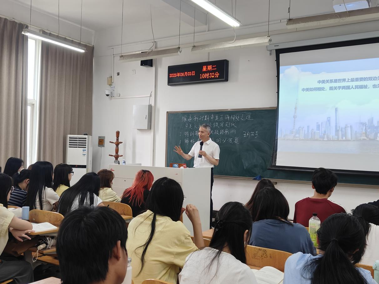 同学们全神贯注地聆听讲解,并积极参与互动,对中美关系有了更清晰、更深刻的认知,纷纷表示,将理性看待中美关系,持续关注国际形势,积极为国家发展、民族繁荣贡献青春力量。(供稿:张炜丹;审稿:梁杰)
