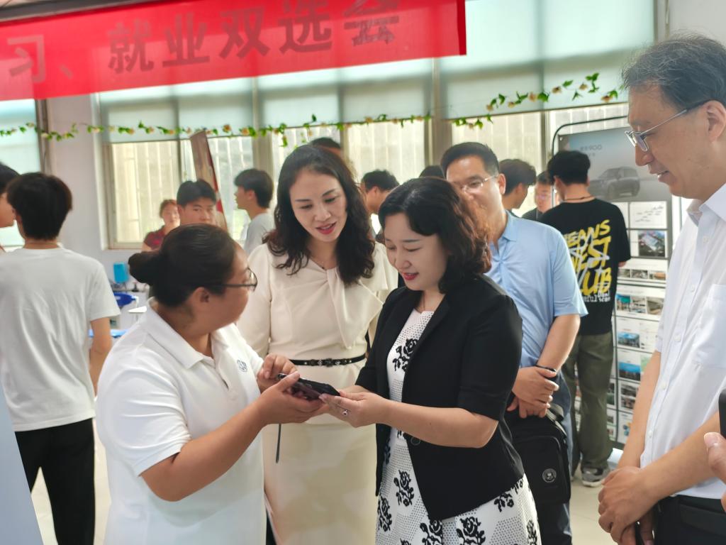 在招聘会现场,汽车技术、新能源汽车等专业的学生手持精心制作的简历,积极与企业招聘人员交流,深入了解岗位要求和职业发展路径。夏新颜来到双选会现场,与企业代表深入沟通,关切询问用人需求,并鼓励学生把握机遇,展现专业素养与青春风采。