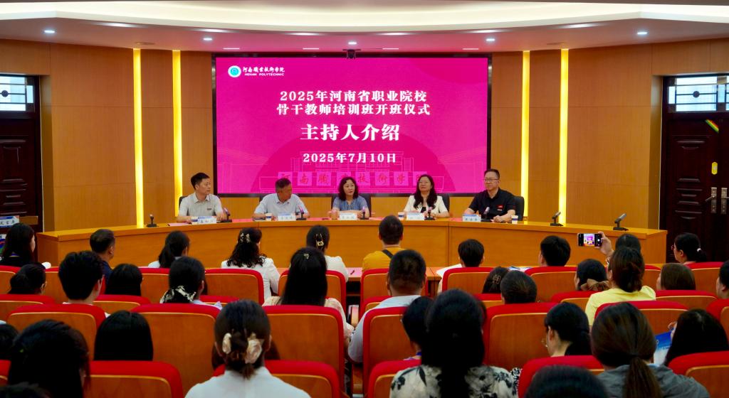 近日,由河南省教育厅主办,河南职业技术学院承办的“2025年河南省职业院校骨干教师培训班”开班仪式在勤业楼239会议室举行。省教育厅领导,校党委副书记、校长夏新颜出席开班仪式并讲话。文化旅游学院、电子与物联网学院、继续教育学院相关负责人,以及来自全省职业院校的120名中高职骨干教师齐聚一堂,共同开启为期15天的集中研修。仪式由校党委委员、副校长李玉峰主持。