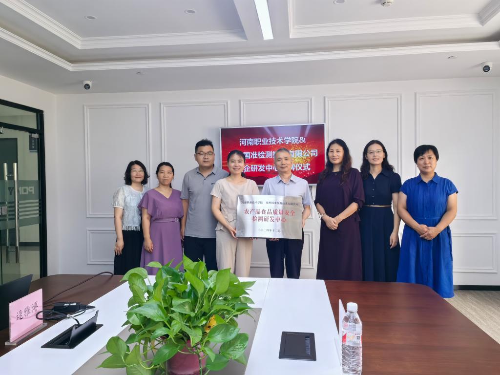 会后,校企双方共同为“河南职业技术学院——郑州国准检测技术有限公司农产品食品质量安全检测研发中心”揭牌,标志着资源共享、优势互补的产学研融合平台正式落地。