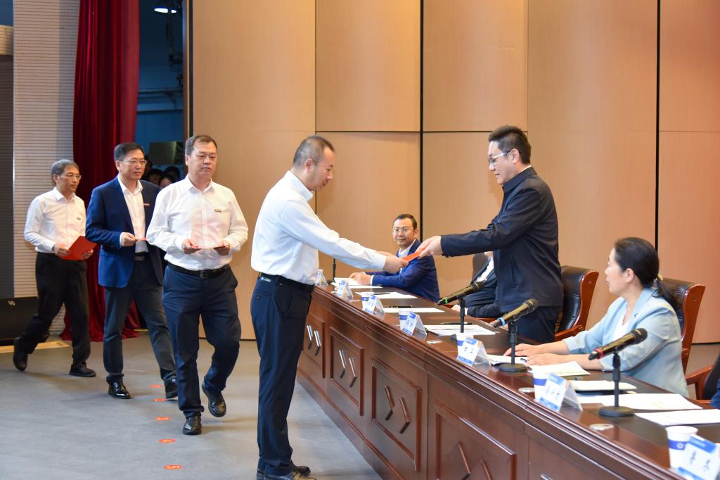 校党委书记厉励为先进单位颁发奖牌