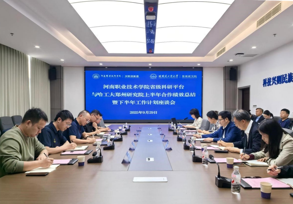 9月29日上午,学校与哈尔滨工业大学郑州研究院在河职创新港302会议室联合召开2025年上半年合作绩效总结暨下半年工作计划座谈会。双方围绕战略合作阶段性成果、未来协同创新方向及职普融通实践路径等议题展开深度座谈。哈工大郑州研究院科研管理与实验设备部部长苑景坤一行5人,校党委委员、副校长任枫轩,科技开发处和学校8个省级科研平台相关人员参加座谈。