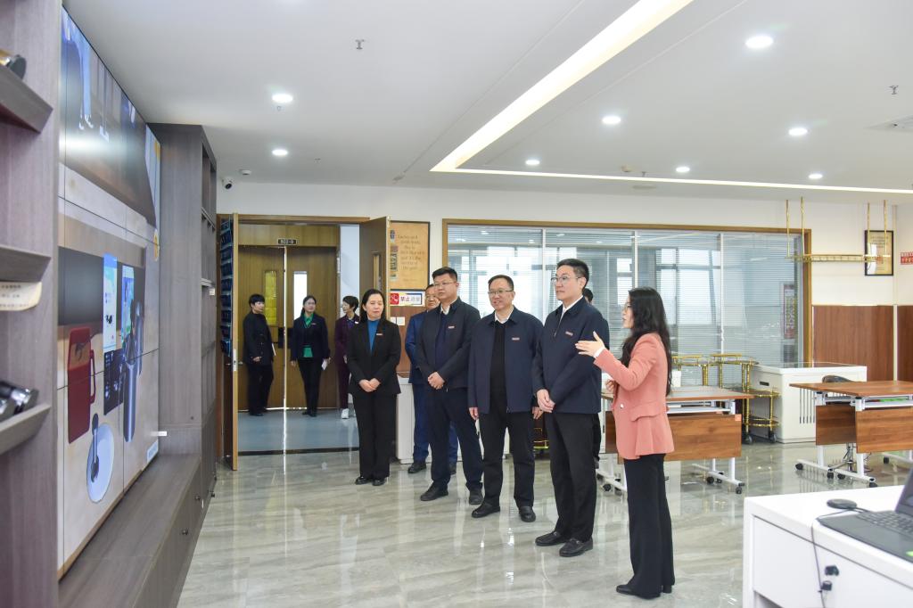 厉励实地察看学院各教研室、办公室及实训室,详细了解实训设施配置、日常教学安排等具体情况,并向在场教师宣讲党的二十届四中全会精神。他指出,“党的二十届四中全会是在我国即将圆满完成‘十四五’规划主要目标任务、乘势而上向基本实现社会主义现代化迈进的关键节点召开的重要会议,具有全局性、战略性深远意义。全会审议通过的‘十五五’规划建议,为我国未来五年发展科学擘画了宏伟蓝图。”他强调,对职业院校而言,全会精神既是办学治校的“指南针”,更是深耕职教赛道的“动力源”。文化旅游学院要精准把握三大关键:切实找准服务国家战略的“契合点”;清晰明确文旅职教的“增长极”;深刻把握助力文旅强省的“机遇期”,全面落实校党委决策部署,持续深化全会精神宣讲阐释,推动全会精神入脑入心、落地生根,切实转化为赋能学院高质量发展的强大动能。厉励勉励教师要扎根职教讲台、深耕育人沃土,把全会精神融入课堂教学与实践育人全过程,以高尚师德和精湛技艺培育文旅行业栋梁;要紧扣文旅产业发展需求,深化产教融合、校企合作,在教学创新与科研攻关中勇挑重担,为文旅强省建设注入职教力量。